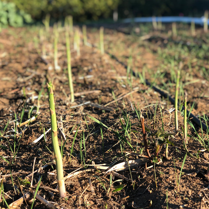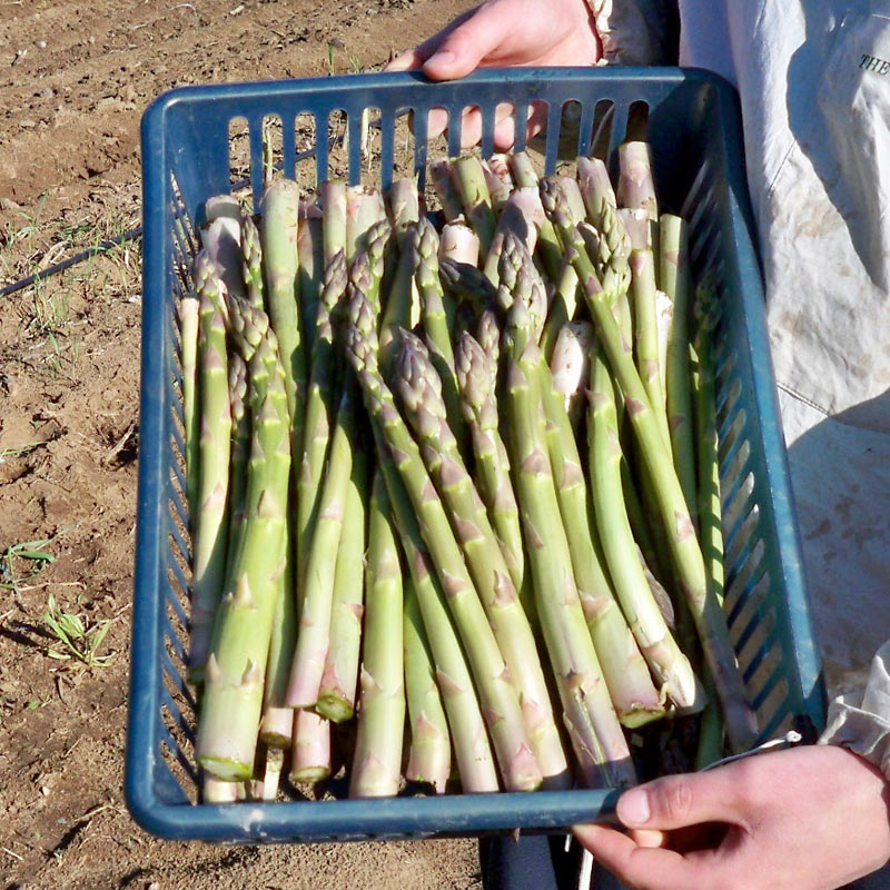 We harvest two varieties of Asparagus starting in early May for about a month.