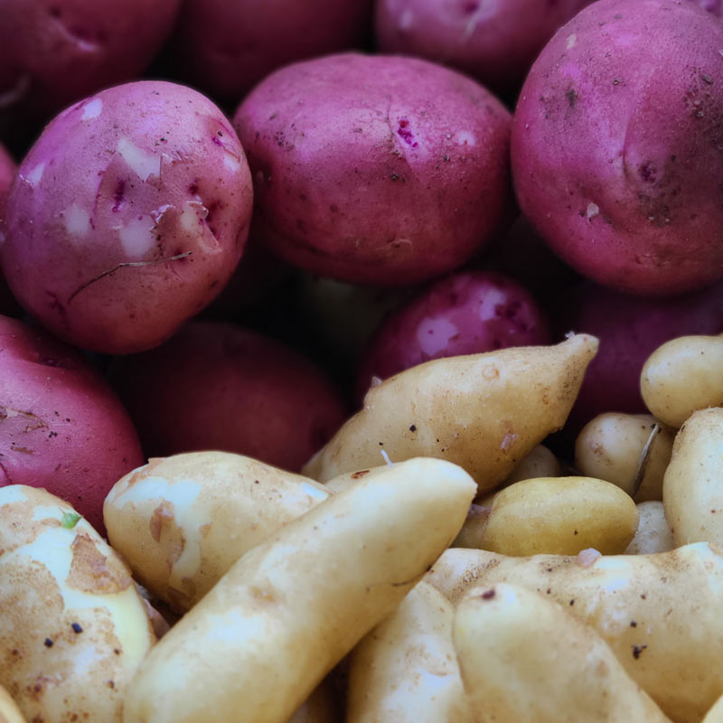 Assorted heirloom, fingerling, red, white, and yellow varieties.